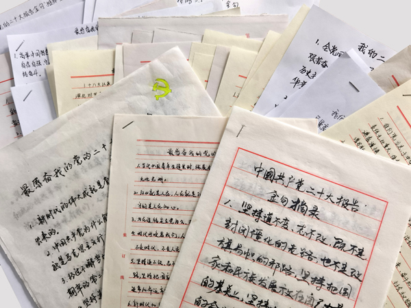 本次活動(dòng),每名黨員職工分段分條推薦并把黨的二十大報(bào)告中讓自己最受感動(dòng)、最受啟迪、最受鼓舞、最受激勵(lì)的原文,用筆抄寫到紙上,每人最少10條,不設(shè)上限。用腦思考、用手抄,手腦并用,學(xué)習(xí)更高效。經(jīng)統(tǒng)計(jì),共計(jì)523名黨員職工參與,累計(jì)推薦金句5530條,最終公司黨委擇優(yōu)評(píng)選出19個(gè)作品給予表彰獎(jiǎng)勵(lì)。(黨委宣傳部)