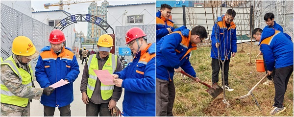 3月7日,在植樹節(jié)即將到來之際,項目團支部開展了“學雷鋒 植新綠”主題志愿服務活動。在淅淅瀝瀝的小雨中,充滿活力的團員青年們手持鐵鍬、水桶,肩扛樹苗,來到D區(qū)智慧建造指揮中心旁的草地,大家迅速分工合作,有的負責挖坑,有的負責搬運樹苗,還有的則小心翼翼地將樹苗植入坑中,并仔細回填土壤、澆水灌溉。小雨似乎也在為他們加油鼓勁,每一滴雨水都像是大自然對這群青年環(huán)保行動的肯定與贊許。經(jīng)過大家的辛勤勞動,蘋果樹、山楂樹、李子樹等30余棵小樹苗扎根挺立,形成一道防止揚塵污染的綠色屏障。(二分公司)