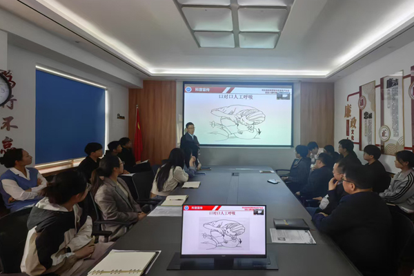 為確保取得實效,黨群辦公室人員根據(jù)職工年齡分層分布的特點,與科長代表、項目經理多次聯(lián)系,提前了解職工想要學習和掌握的健康知識,作為重點講解內容。經過多方溝通,黨群辦公室人員了解到職工想要學習心肺復蘇、黃金四分鐘急救、正確操作自動體外除顫儀、海姆立克急救,以及慢性心血管疾病前期癥狀識別、心梗腦梗突發(fā)時如何自救、肩周炎、頸椎炎、腰肌勞損等醫(yī)學知識,便將收集的意見和建議進行歸納總結,反饋給授課老師。老師根據(jù)意見建議,制作貼合職工需求的課件。講座分為健康知識講解、現(xiàn)場答疑解惑、實操練習三個環(huán)節(jié),采用遞進式講解的方法,確保職工聽得懂、學得會、用得上。