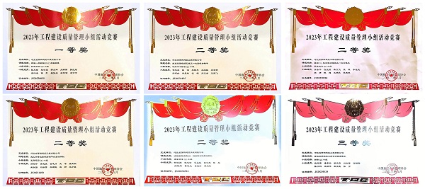 具體獲獎情況為:七分公司壯志凌云QC小組完成的《研制一種新型PVC吊模裝置》成果獲得一等獎;一分公司珠海中心糧倉QC小組完成的《提高屋面琉璃瓦施工一次驗收合格率》成果、四分公司勇攀高峰QC小組完成的《研制新型衛(wèi)生間、廚房降板定型化模板》成果、六分公司贏在起點QC小組完成的《提高CL復合剪力墻施工一次合格率》成果及八分公司王府花園QC小組完成的《施工升降設備鋼結(jié)構(gòu)平臺基礎(chǔ)研制》成果共四項成果獲得二等獎;五分公司新安QC小組完成的《降低鋼筋混凝土筒倉滑模漏漿率》成果獲得三等獎。