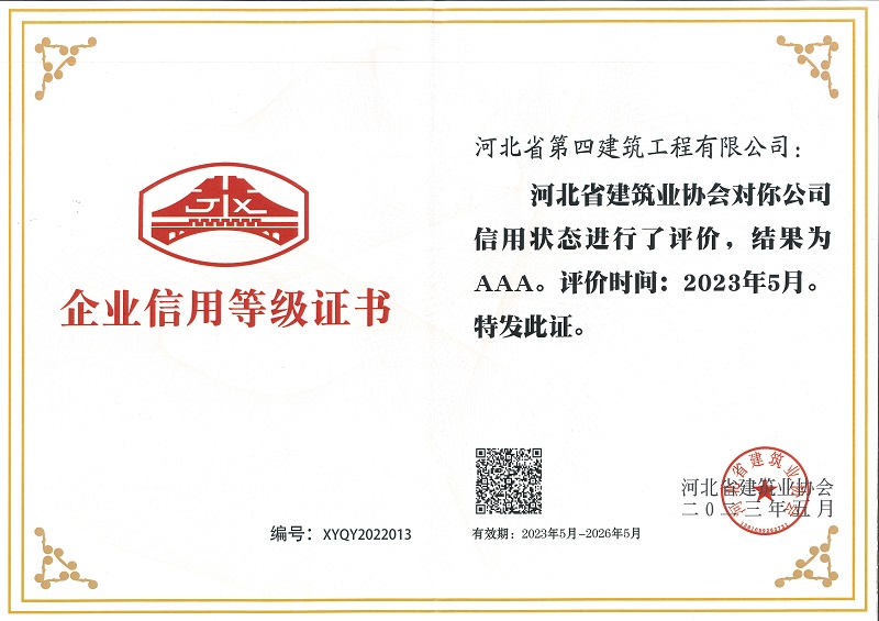 公司喜獲河北省建協(xié)“AAA級企業(yè)信用等級證書”