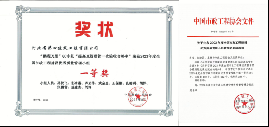9月18日,公司收到中國市政工程協(xié)會(huì)《關(guān)于公布2023年度全國市政工程建設(shè)優(yōu)秀質(zhì)量管理小組獲獎(jiǎng)名單的通知》文件,公司推薦參賽的成果獲得一等獎(jiǎng)。