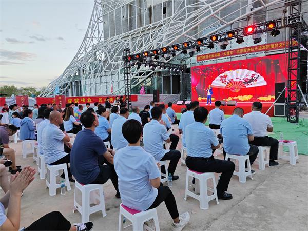 活動(dòng)開(kāi)始前,吳嘉龍一行聽(tīng)取了項(xiàng)目部工作匯報(bào),參觀了施工現(xiàn)場(chǎng),并對(duì)省直工會(huì)普惠政策和“職工e惠”綜合服務(wù)平臺(tái)進(jìn)行了詳細(xì)介紹。隨著下班時(shí)間的到來(lái),項(xiàng)目部職工陸續(xù)來(lái)到彩旗飄揚(yáng)的活動(dòng)現(xiàn)場(chǎng),由不同領(lǐng)域勞模組成的六支服務(wù)隊(duì)前漸漸圍滿了人群,有的修剪頭發(fā),有的為手機(jī)貼膜,有的接受專家的診療、領(lǐng)取免費(fèi)的藥物,有的聽(tīng)取法律條文及最新的技術(shù)信息等方面的介紹……下午6點(diǎn)30分,在一曲優(yōu)美的開(kāi)場(chǎng)舞蹈《我的祖國(guó)》中,“送文化志愿服務(wù)”拉開(kāi)了序幕。舞臺(tái)上,歌曲、反串、變臉、相聲、雜技、舞蹈,一個(gè)個(gè)精彩節(jié)目輪番上陣,為職工們送上了一場(chǎng)視聽(tīng)盛宴。在互動(dòng)環(huán)節(jié),現(xiàn)場(chǎng)職工熱情高漲、積極參與,掌聲、喝彩聲此起彼伏,歡聲笑語(yǔ)久久回蕩。昂揚(yáng)向上的文藝節(jié)目,展現(xiàn)了勞動(dòng)者的精氣神,給予了職工極大的鼓舞。