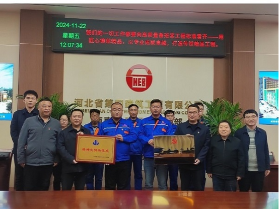 驗(yàn)收組實(shí)地查看了施工現(xiàn)場、智慧化中心、基坑氣膜、黨員活動室、職工食堂等區(qū)域,對項(xiàng)目整體情況進(jìn)行了全面了解。在會議室,項(xiàng)目黨支部書記袁世超從強(qiáng)化班子建設(shè)、統(tǒng)一思想共識、抓好隊(duì)伍建設(shè)、黨建與生產(chǎn)同頻、夯實(shí)廉政建設(shè)、黨建帶動群團(tuán)以及弘揚(yáng)企業(yè)文化等七個(gè)方面進(jìn)行了詳細(xì)匯報(bào)。驗(yàn)收組認(rèn)真查閱了《黨支部工作手冊》、各類臺賬等相關(guān)資料,并提出改進(jìn)建議。經(jīng)驗(yàn)收組成員共同審議,項(xiàng)目以高分順利通過集團(tuán)“黨建示范點(diǎn)”“精神文明示范點(diǎn)”驗(yàn)收。