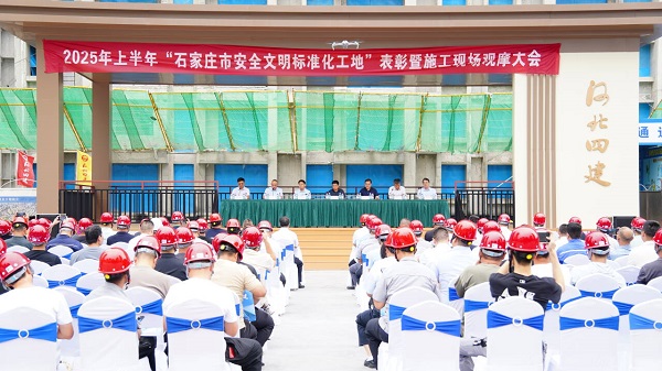 6月26日,2025年上半年“石家莊市安全文明標(biāo)準(zhǔn)化工地”表彰暨施工現(xiàn)場觀摩大會(huì)在二分公司西三教城中村改造回遷項(xiàng)目舉行。石家莊市住房和城鄉(xiāng)建設(shè)局副局長蘇西彥、河北省建筑業(yè)協(xié)會(huì)副會(huì)長李同澤、石家莊市建筑協(xié)會(huì)執(zhí)行會(huì)長王洪祥、石家莊市建筑協(xié)會(huì)安全專業(yè)委員會(huì)秘書長劉振波、河北建工集團(tuán)安全管理部部長柴竑、公司副總經(jīng)理劉金河,石家莊市住建集團(tuán)建筑工程有限公司安全主管、石家莊市建筑協(xié)會(huì)安全專業(yè)委員會(huì)副秘書長王靜等領(lǐng)導(dǎo),以及來自全市建筑行業(yè)近200名同仁參與會(huì)議并觀摩。