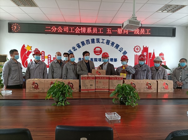 五一勞動(dòng)節(jié)到來(lái)之際,二分公司一直掛念著奮戰(zhàn)在項(xiàng)目施工一線(xiàn)的職工。4月30日上午,分公司工會(huì)主席孫立鋒一行代表分公司到石家莊井陘縣醫(yī)院項(xiàng)目,看望慰問(wèn)項(xiàng)目職工,為奮戰(zhàn)在施工一線(xiàn)的職工送上節(jié)日慰問(wèn)品和祝福。
