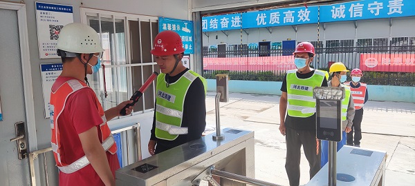 “師傅,對著酒精測試儀先吹一下”,5月16日下午2時,八分公司泰安王府花園項(xiàng)目在實(shí)名制通道對施工工人進(jìn)行上崗前酒精檢測。