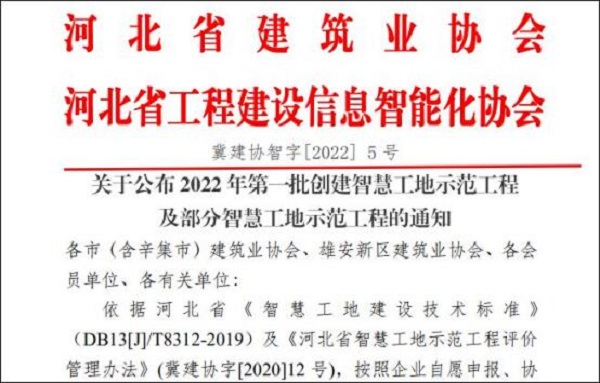 5月29日,河北省建筑業(yè)協(xié)會(huì)與河北省工程建設(shè)信息智能化協(xié)會(huì)聯(lián)合發(fā)布了2022年河北省第一批創(chuàng)建智慧工地示范工程名單,由二分公司承建的井陘縣醫(yī)院救治能力提升項(xiàng)目獲得了河北省智慧工地最高級(jí)別——三星級(jí)示范工地的榮譽(yù)。