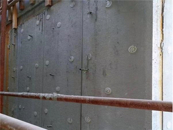 為此,項(xiàng)目部成立專門的課題實(shí)施小組,提出利用BIM技術(shù)繪制Revit模型,對(duì)復(fù)合保溫板進(jìn)行統(tǒng)一建模排版、分拆、編號(hào)、加工制作,再采用“三合一”技術(shù)創(chuàng)新方法開展施工:一是基于3D打印技術(shù),設(shè)計(jì)了一種帶卡槽結(jié)構(gòu)的新型墊塊,來控制鋼筋混凝土保護(hù)層厚度,二是制作加固直板,確保復(fù)合保溫板陰陽角施工質(zhì)量,三是采取螺栓孔洞內(nèi)填充防水砂漿、保溫砂漿封堵等措施,不僅增強(qiáng)了墻體的性能,還提高了外墻防滲防漏水性能,共同形成了“FW-Ⅲ復(fù)合保溫板與模板一體化支設(shè)工藝”科研成果。