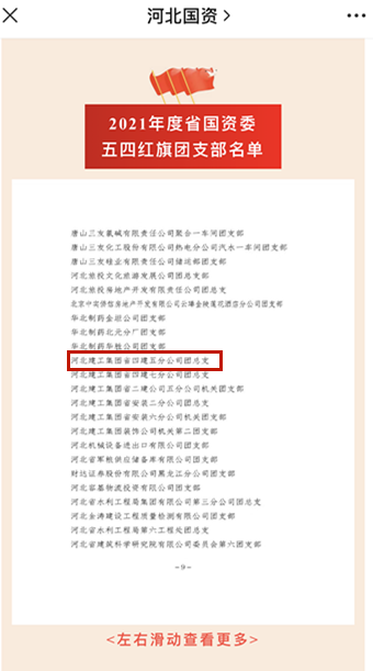 5月上旬,喜訊傳來!五分公司團總支受到河北省國資委團委、省國資委青聯(lián)聯(lián)合表彰,被評為“2021年度河北省國資委五四紅旗團支部”。