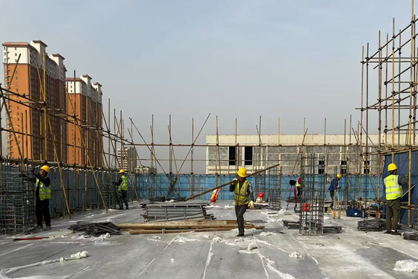 春日天氣漸暖,正是施工項目大干快干的黃金期。項目部搶抓有利時機,吹響“沖鋒號”,奮力沖刺首季目標任務(wù)。壓實工作責(zé)任,緊盯時間節(jié)點,全面梳理節(jié)點目標、精準倒排工期,優(yōu)化施工組織方案,增加鋼筋綁扎、模板支設(shè)等作業(yè)人員共計20余人,分工協(xié)作,全速推進項目進度。目前綜合教學(xué)樓已封頂,正在進行餐廳及多功能廳主體結(jié)構(gòu)施工。